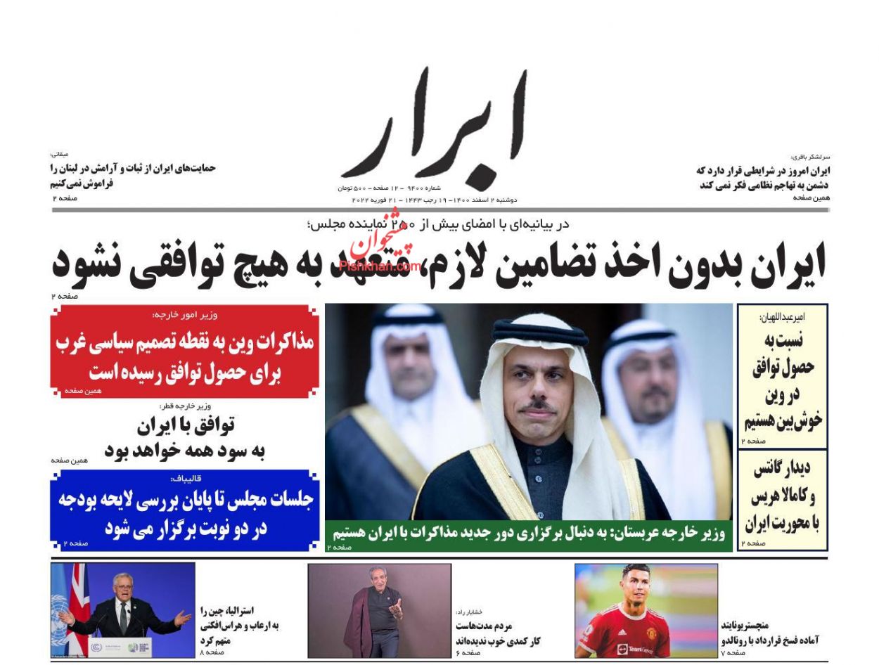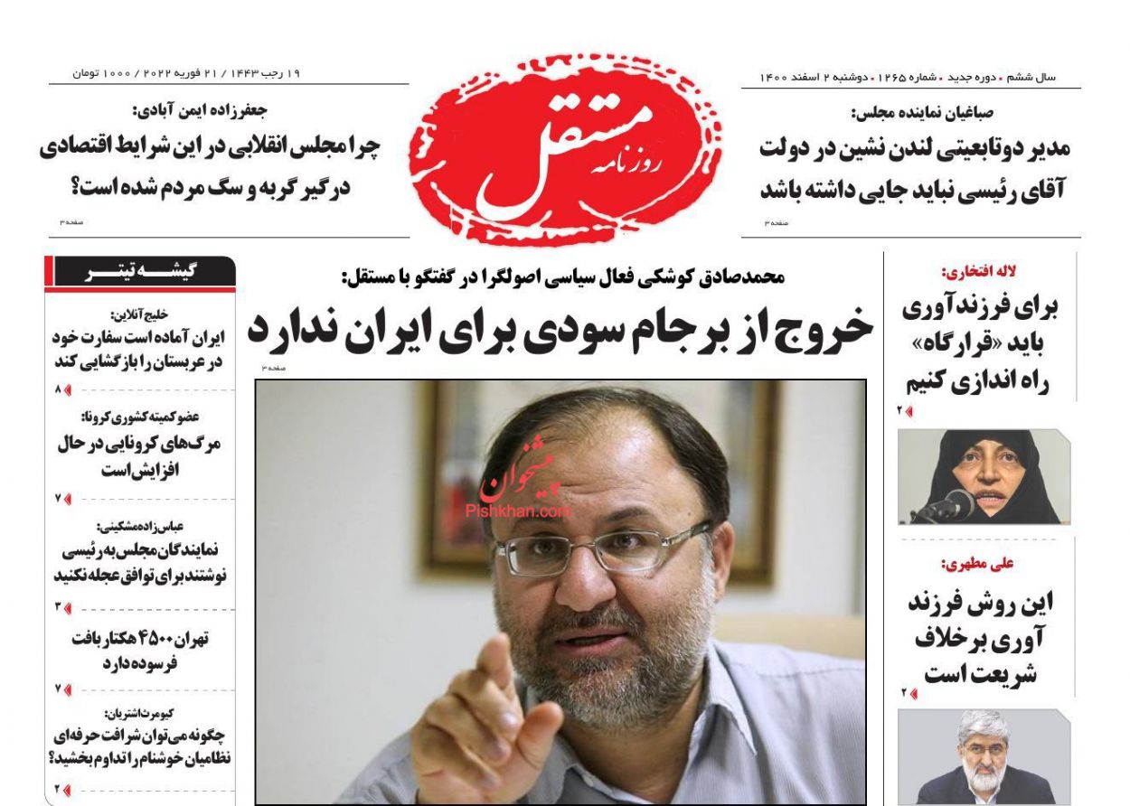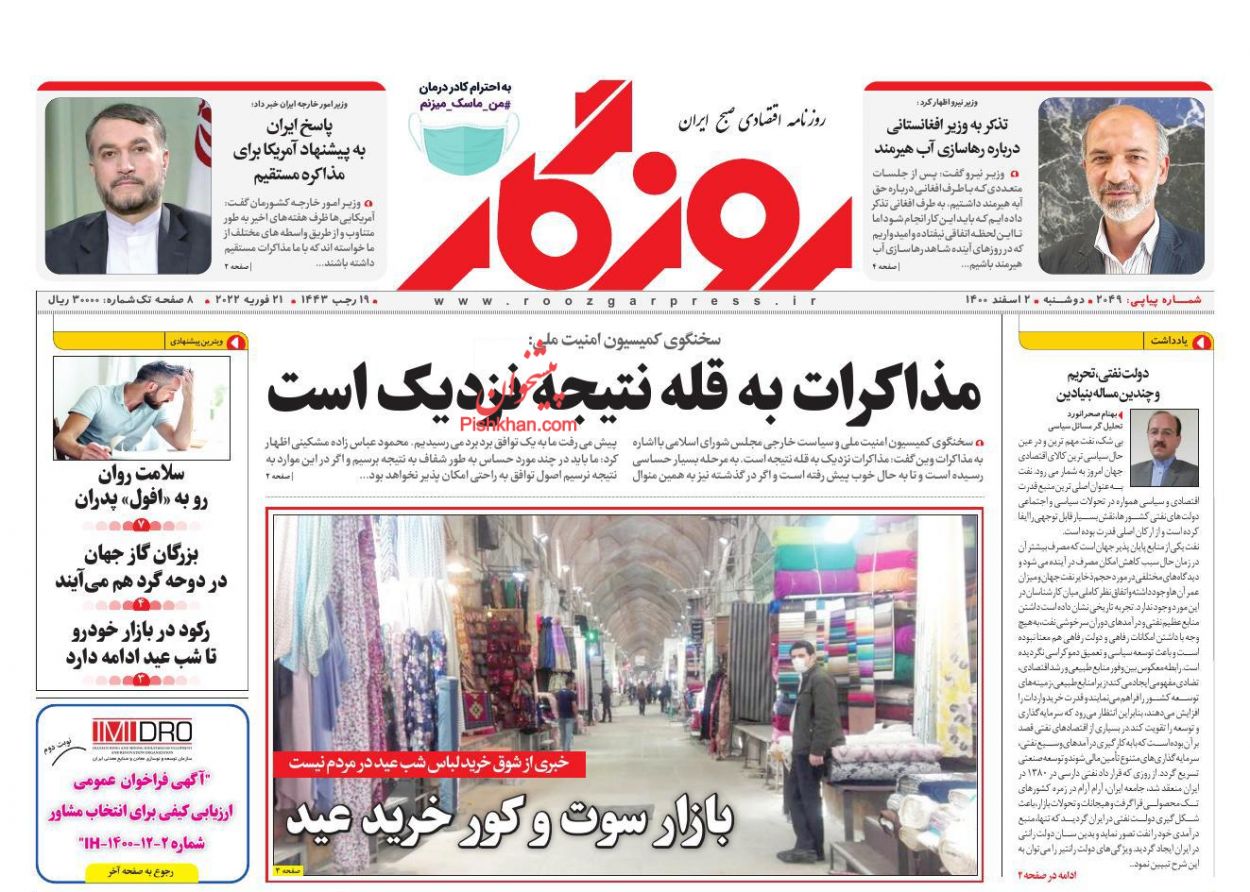 تاریخ انتشار: 1400/12/2 8:43     /     کد خبر : 5159     /     دسته خبر : مکتوب