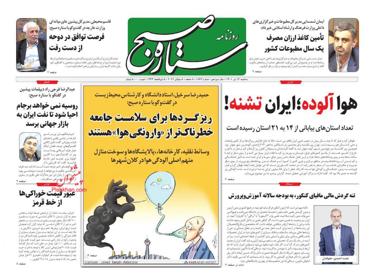 آفتاب یزد ، سهشنبه ۱۴ تیر